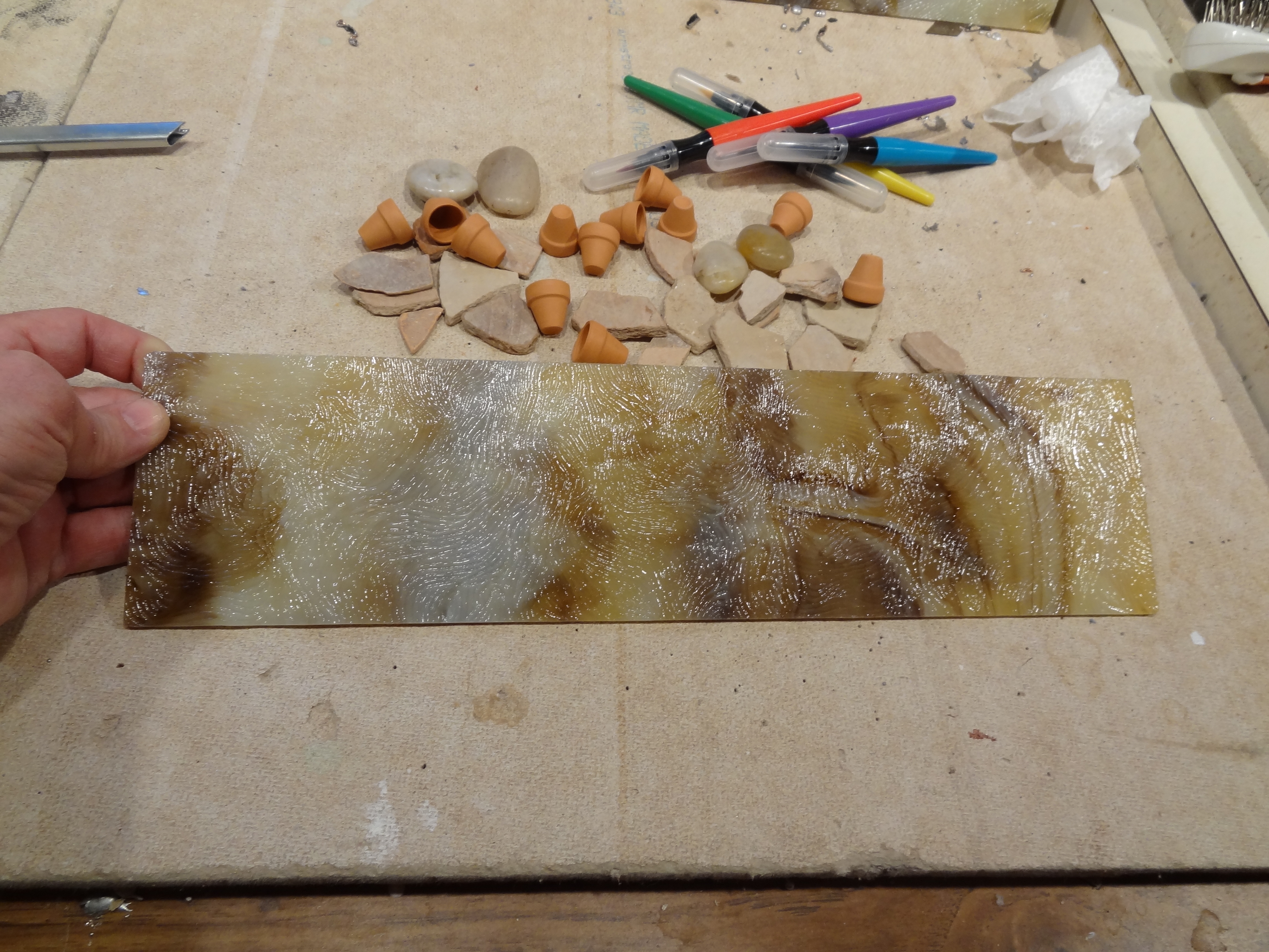The glass is reminiscent of Jerusalem Stone. The picture above shows Matan using the glue gun to assemble his Menorah. But by far the most important and authentic materials of this menorah are the shards of pottery which date from the time of the Maccabees!! I collected them at an archeological dig I participated in 3 years ago. They were waiting in my studio for just this moment. The 8 candles – plus the shamash, represent the 8 days of Chanukah. The 12 shards of pottery represent the 12 Tribes.