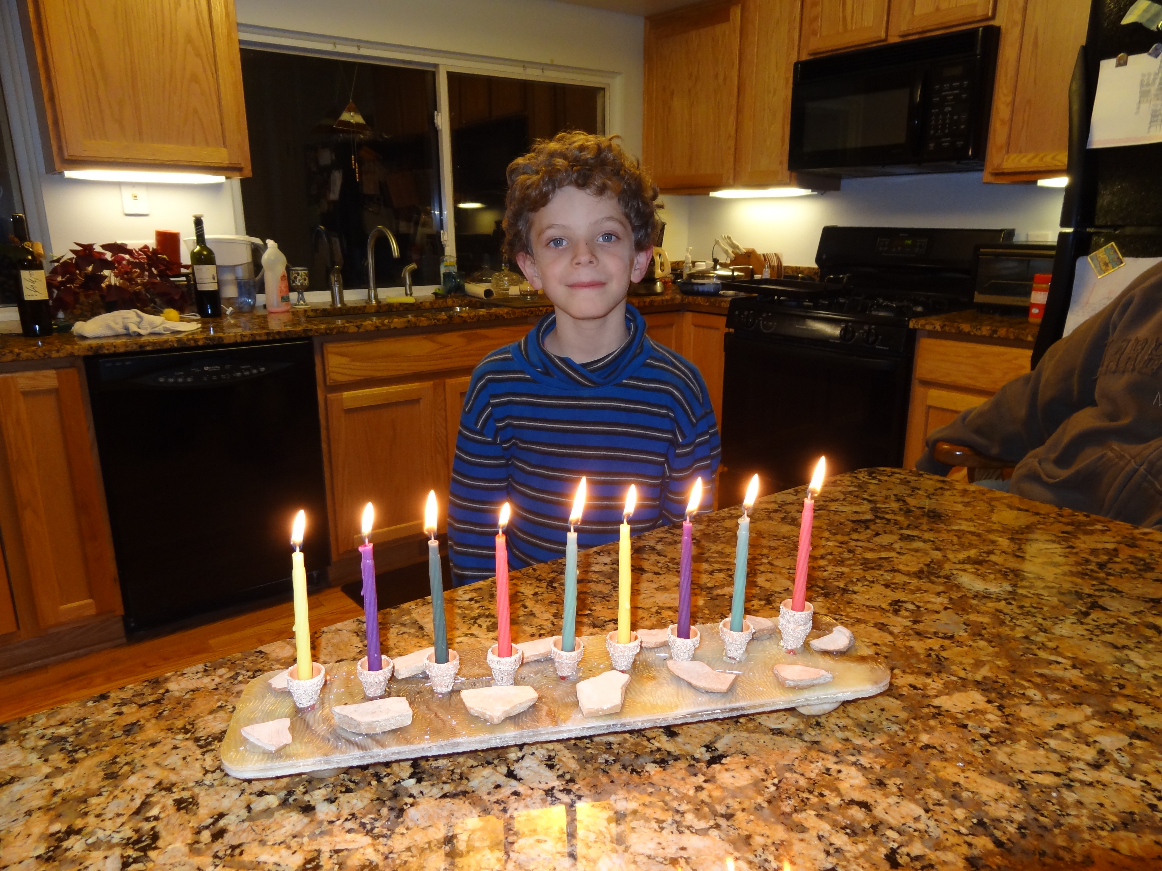 –This is Matan’s Menorah. He and I made it just in time for Chanukah.