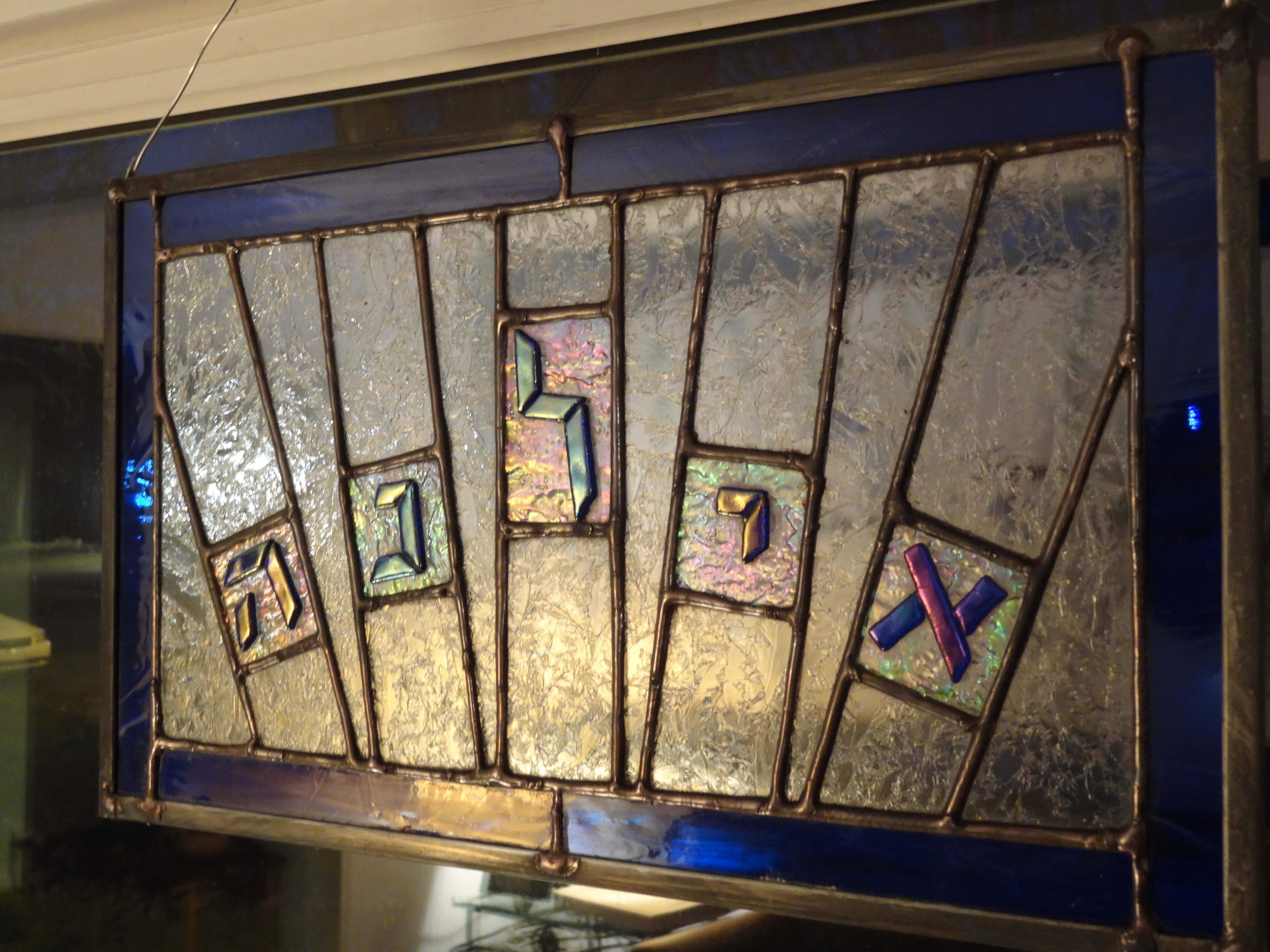This is the first time I have combined my fused glass with my stained glass. The fused glass is transparent during the day and iridescent at night.