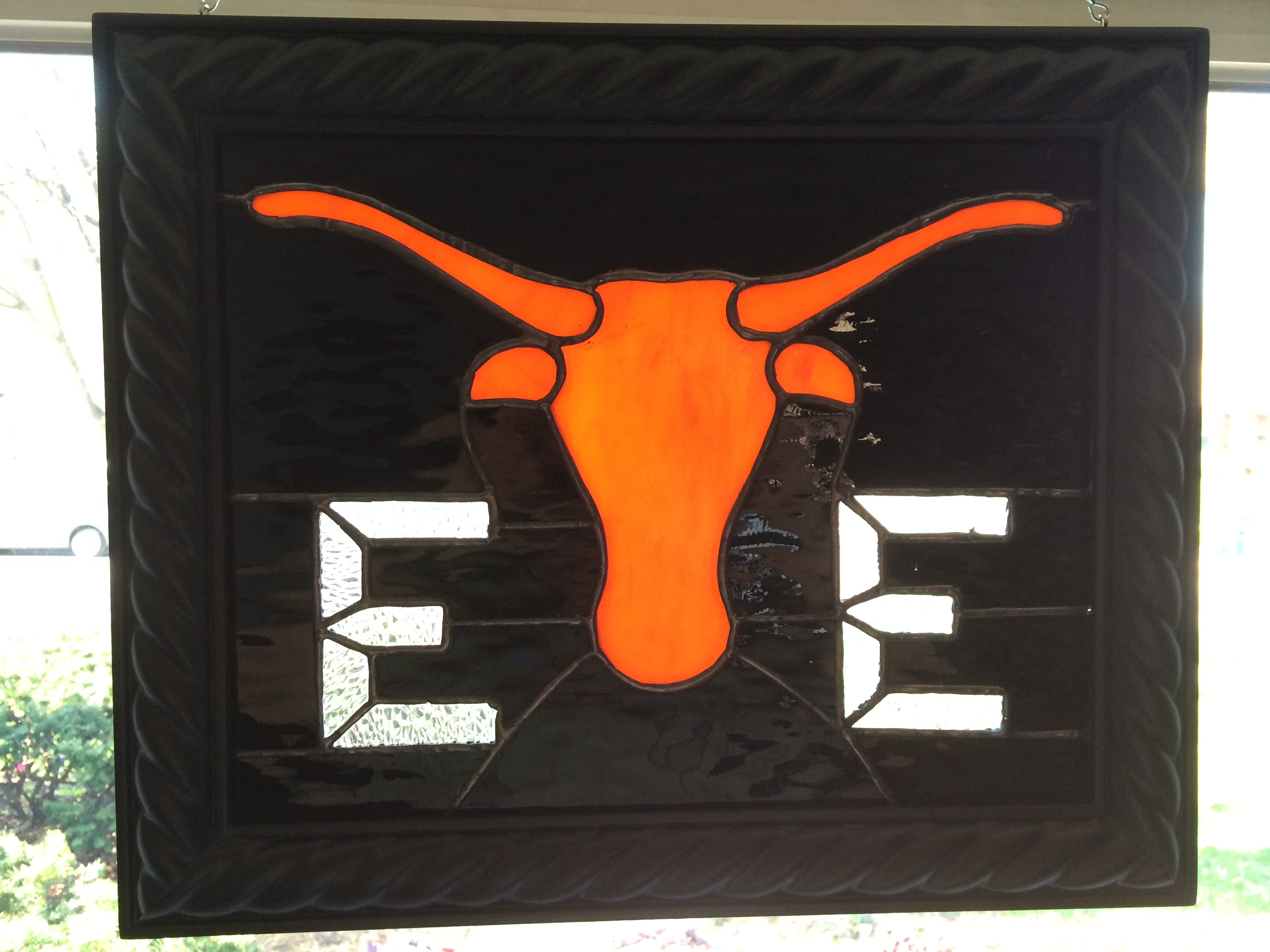 Hook ‘Em Horns!! Sometimes it’s just good to honor another team — Even If they are from TEXAS ! Or Even TENNESSEE ! Go VOLS ! Share this: Click to share on Facebook (Opens in new window) Facebook Click to share on X (Opens in new window) X Like Loading... Related July 11, 2013January 8, 2015 by ronsglass Categories: UncategorizedTags: Hook 'em horns, Longhorns, Texas stained glass, UT stained glass Leave a comment